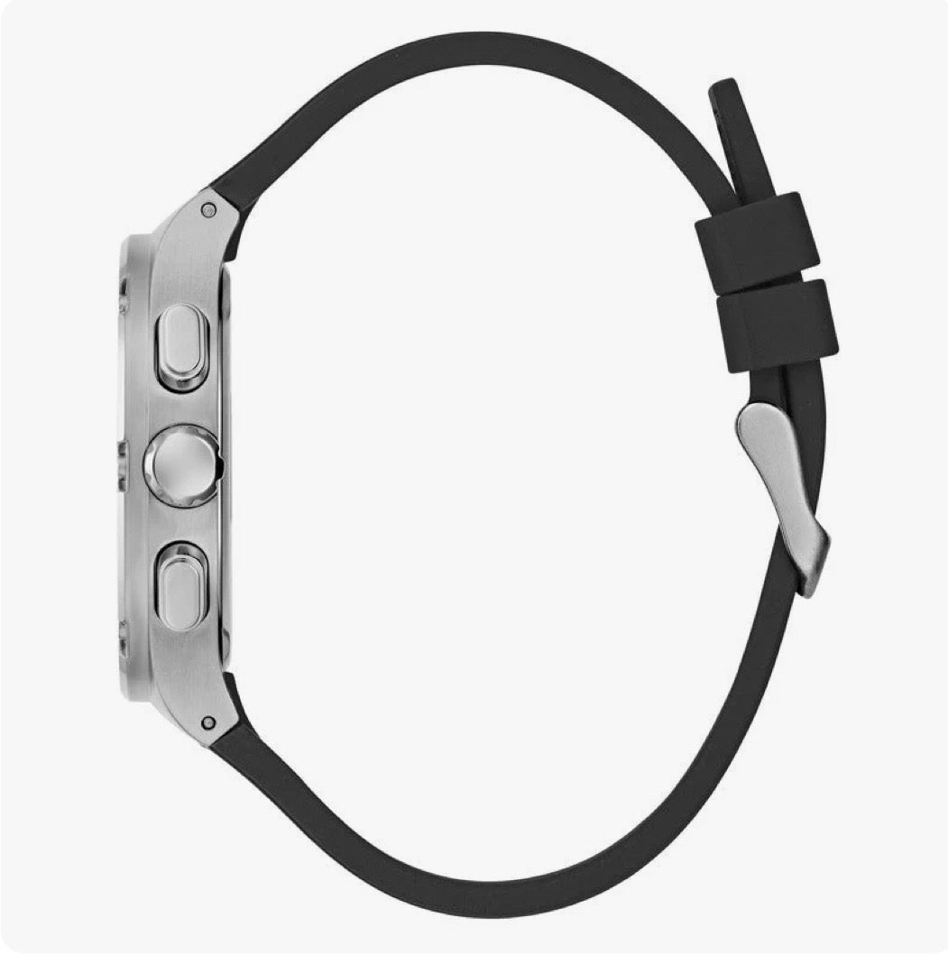 - Band: Black Smooth Silicone with Strap Buckle